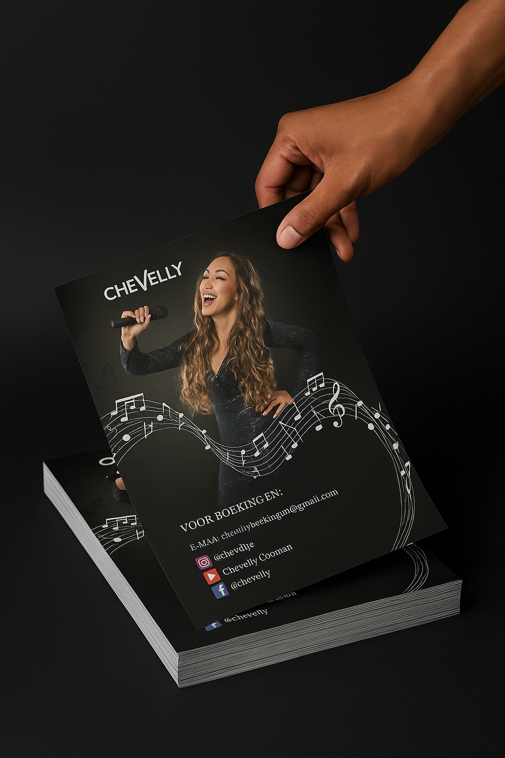 De kaarten zijn precies geworden zoals ik ze voor me zag. Mooie kwaliteit, snelle service en echt persoonlijk contact. Ideaal promotiemateriaal voor mijn optredens!