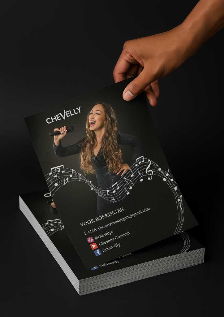 Wij staan klaar om je daarbij te begeleiden. Jij levert de foto en tekst, en wij zorgen voor een professioneel ontwerp en hoogwaardige afdruk. Zo kun jij je volledig richten op je muziek en je carrière, terwijl je weet dat je promotiemateriaal tot in de puntjes geregeld is.